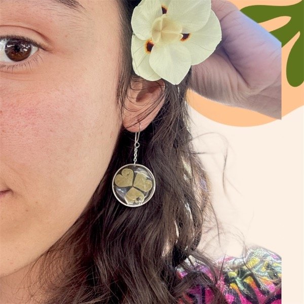 Par de aros con pasantes de acero inoxidable, con flores naturales encapsuladas en resina epoxi.