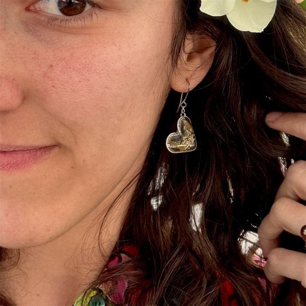 Par de aros con pasantes de acero inoxidable, con flores naturales encapsuladas en resina epoxi.