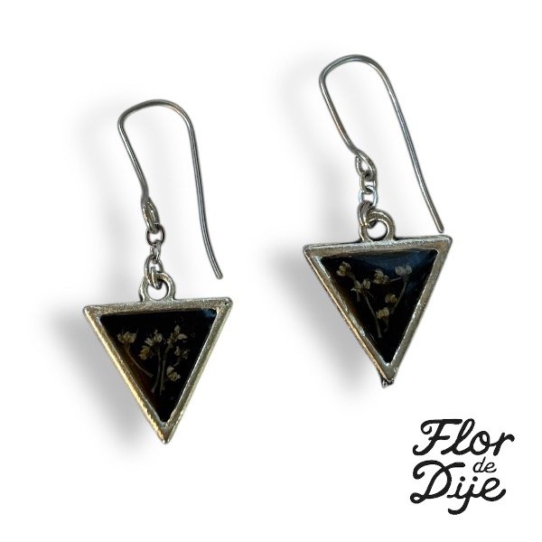 Par de aros con pasantes de acero inoxidable, con flores naturales encapsuladas en resina epoxi.