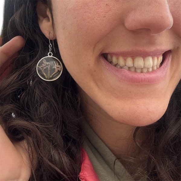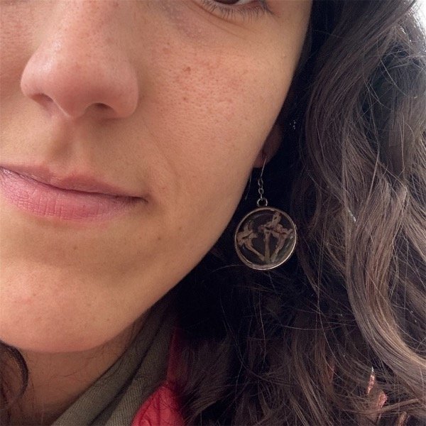 Par de aros con pasantes de acero inoxidable, con flores naturales encapsuladas en resina epoxi.