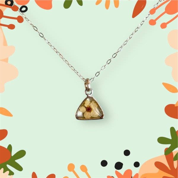 Este dije está elaborado con un pedacito de naturaleza seca, preservada y encapsulada en resina epoxi cristalina.